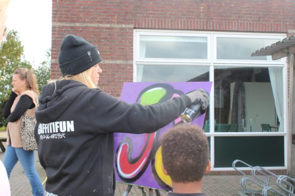 Fotos Graffiti: Creativiteit kent geen grenzen! Bewonder de kleurrijke kunstwerken en de trotse kunstenaars tijdens ons graffiti-evenement. Een echt feest van expressie!